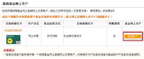 第一步:浙商基金網(wǎng)上開戶頁(yè)面:選擇銀行卡